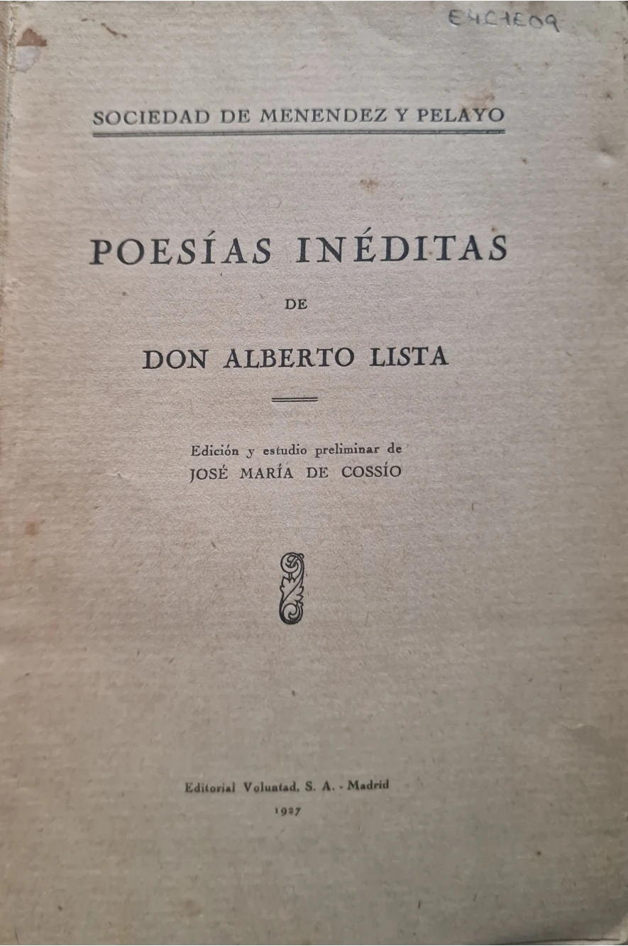 Autoría: Lista y Aragón, Alberto (1775-1848) Cossío, José María de (1893-1977)