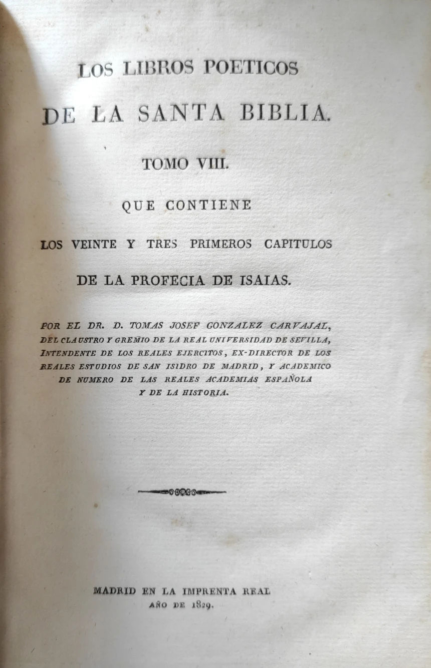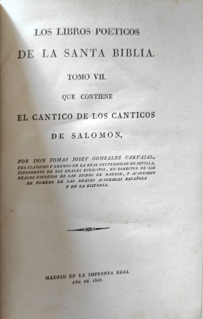 Título: Los libros poéticos de la Santa Biblia. Tomo VII, que contiene el Cantico de los Canticos de Salomon...