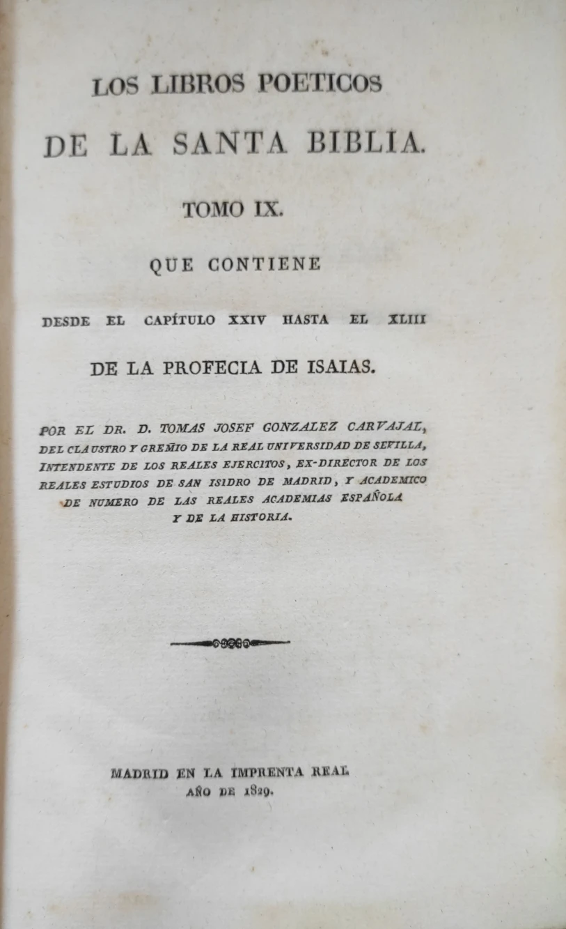 Título: Los libros poéticos de la Santa Biblia. Tomo IX, que contiene desde el capítulo XXIV hasta el XLIII....