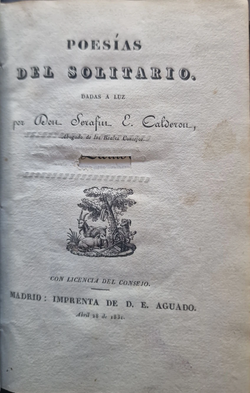 Título: Poesías del Solitario. Dadas a luz por Don Serafín E. Calderón.
