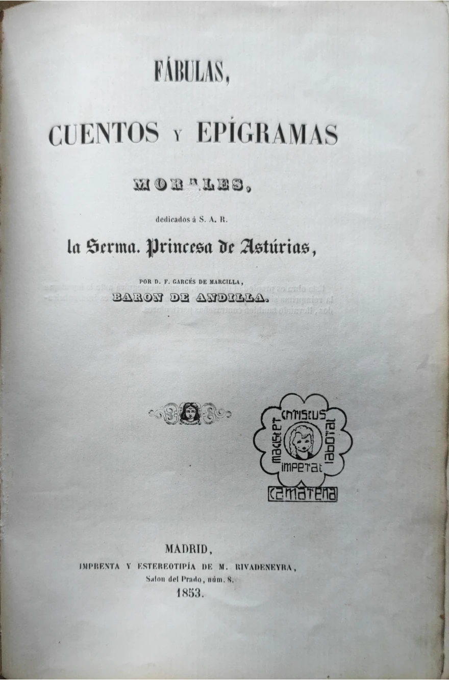 Título: Fábulas, cuentos, y epígramas morales, dedicados a S.A.R. la Serma. Princesa de Astúrias. Por F. Gar...