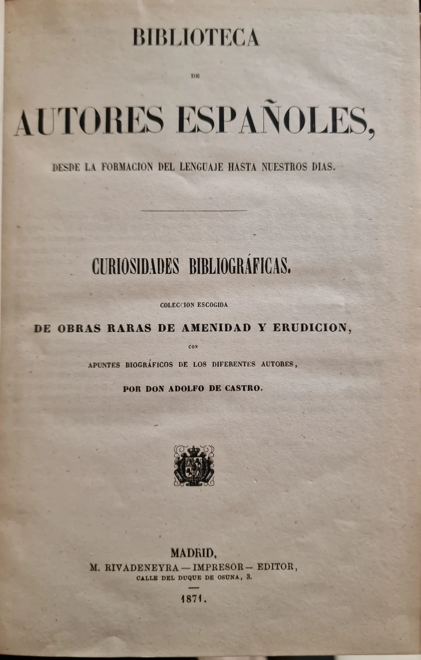 Título: Curiosidades bibliográficas. Colección escogida de obras raras de amenidad y erudición, con apuntes ...