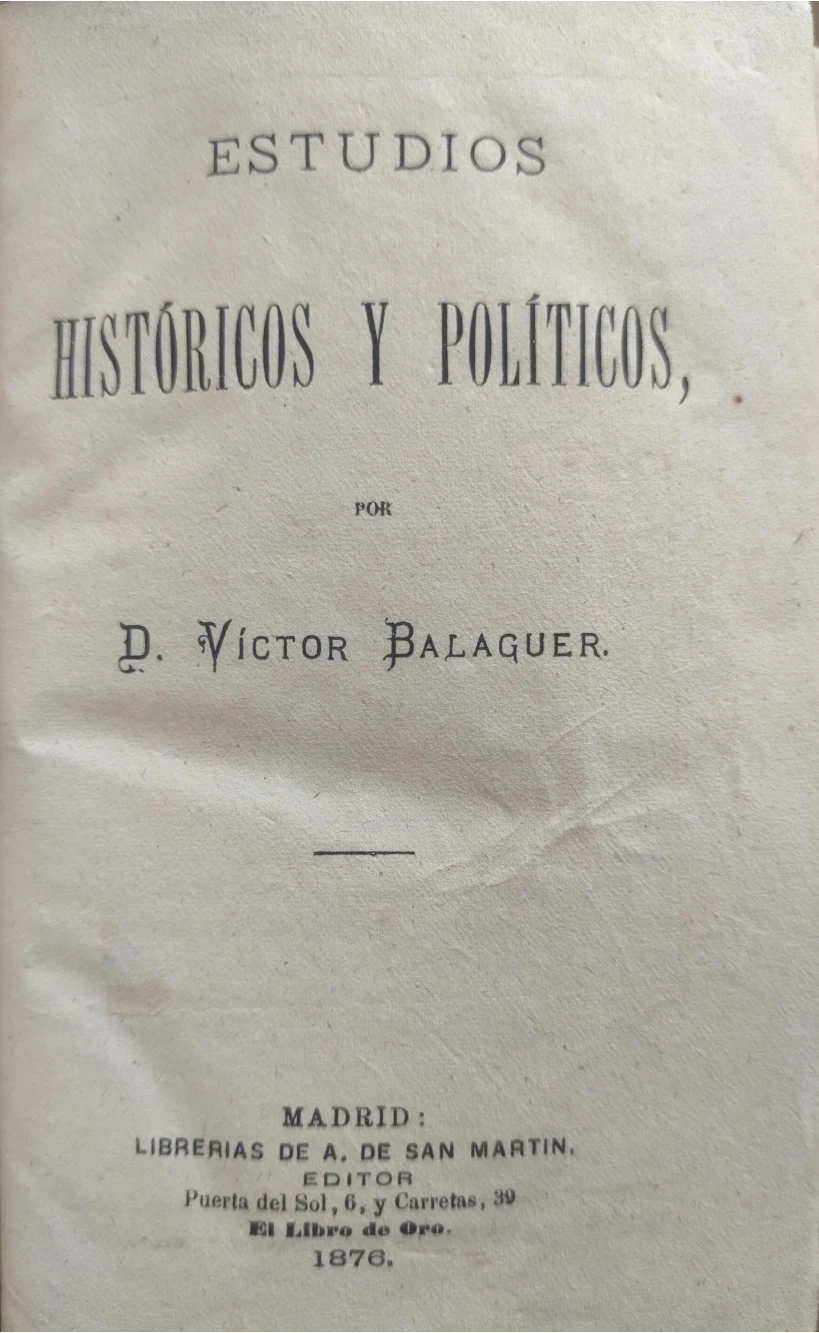 Título: Estudios históricos y políticos, por Víctor Balaguer.