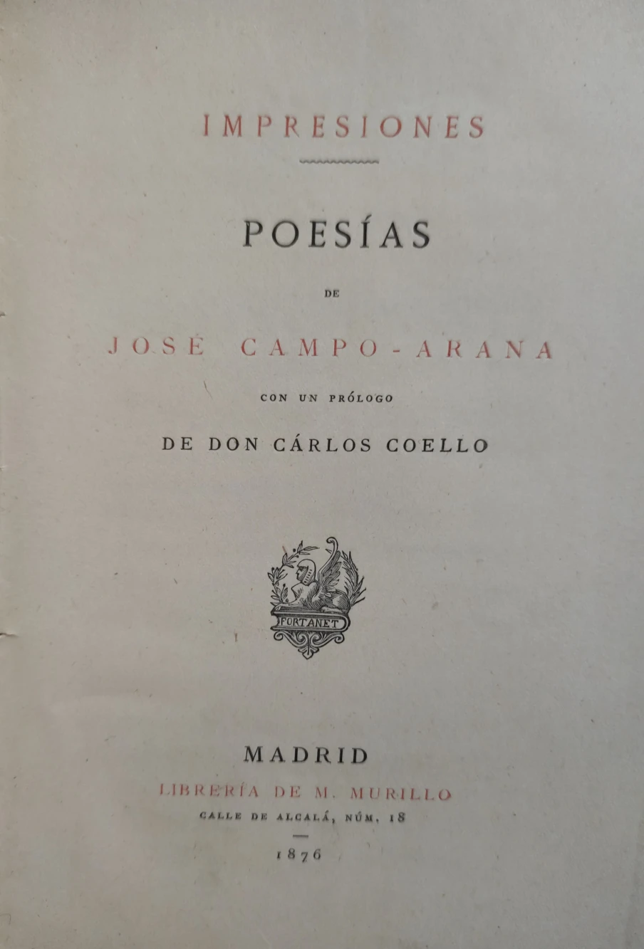 Título: Poesías de José Campo-Arana. Con un prólogo de don Cárlos Coello.