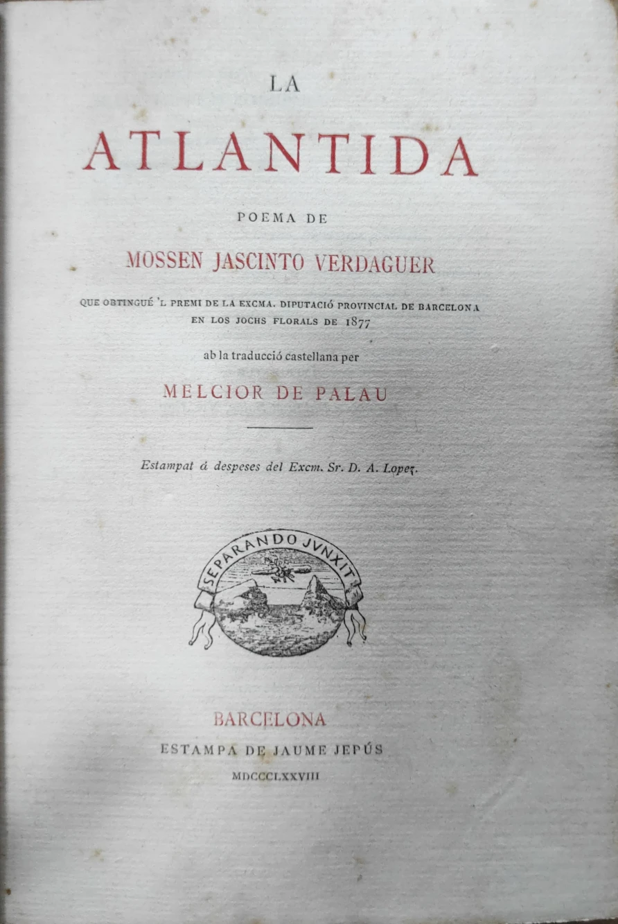 Título: La atlantida, poema de Mossen Jascinto Verdaguer. Que obtingué `l premi de la excma. Diputació provi...