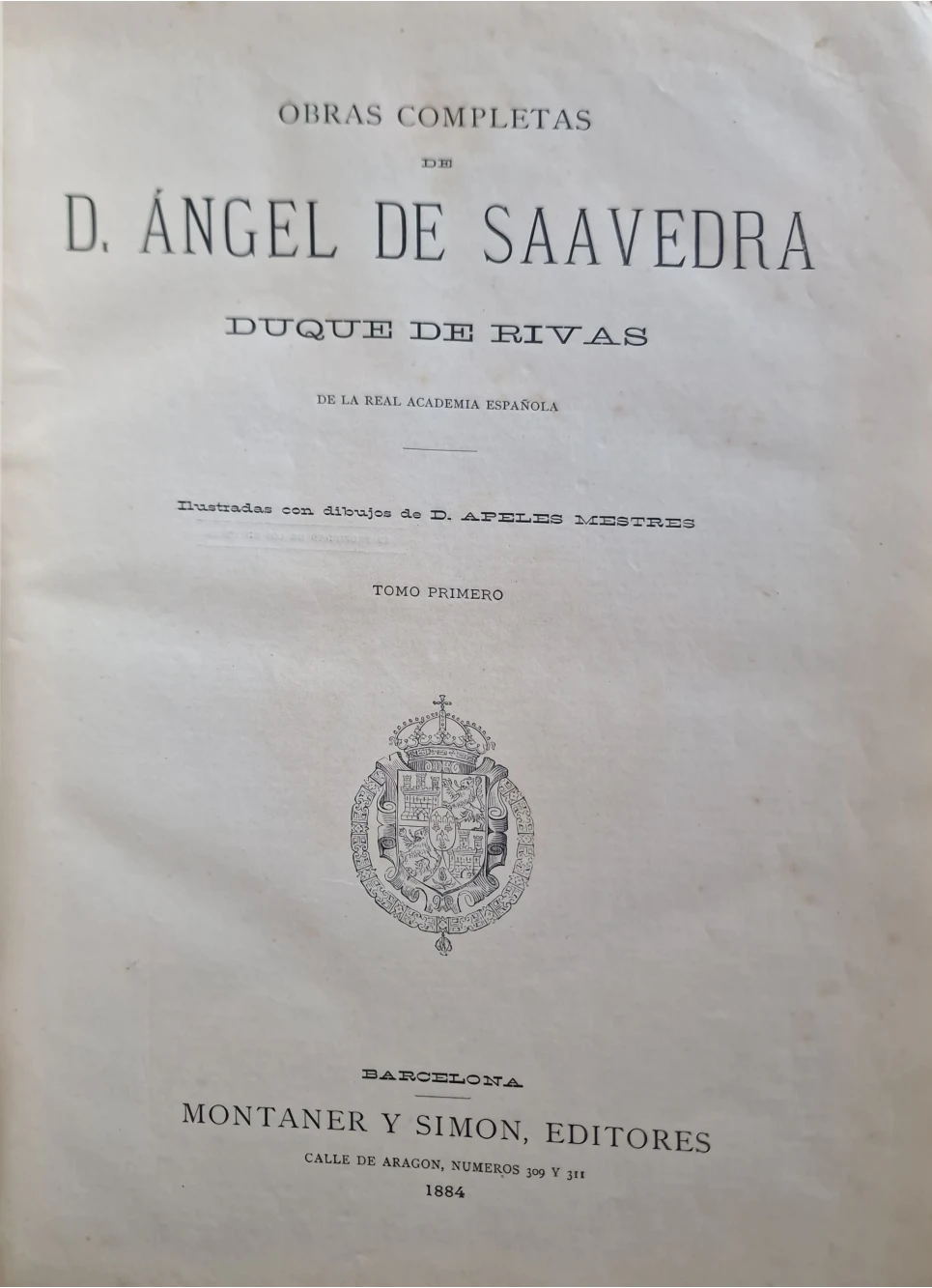 Título: Obras completas del D. Angel de Saavedra Duque de Rivas. Tomo I.