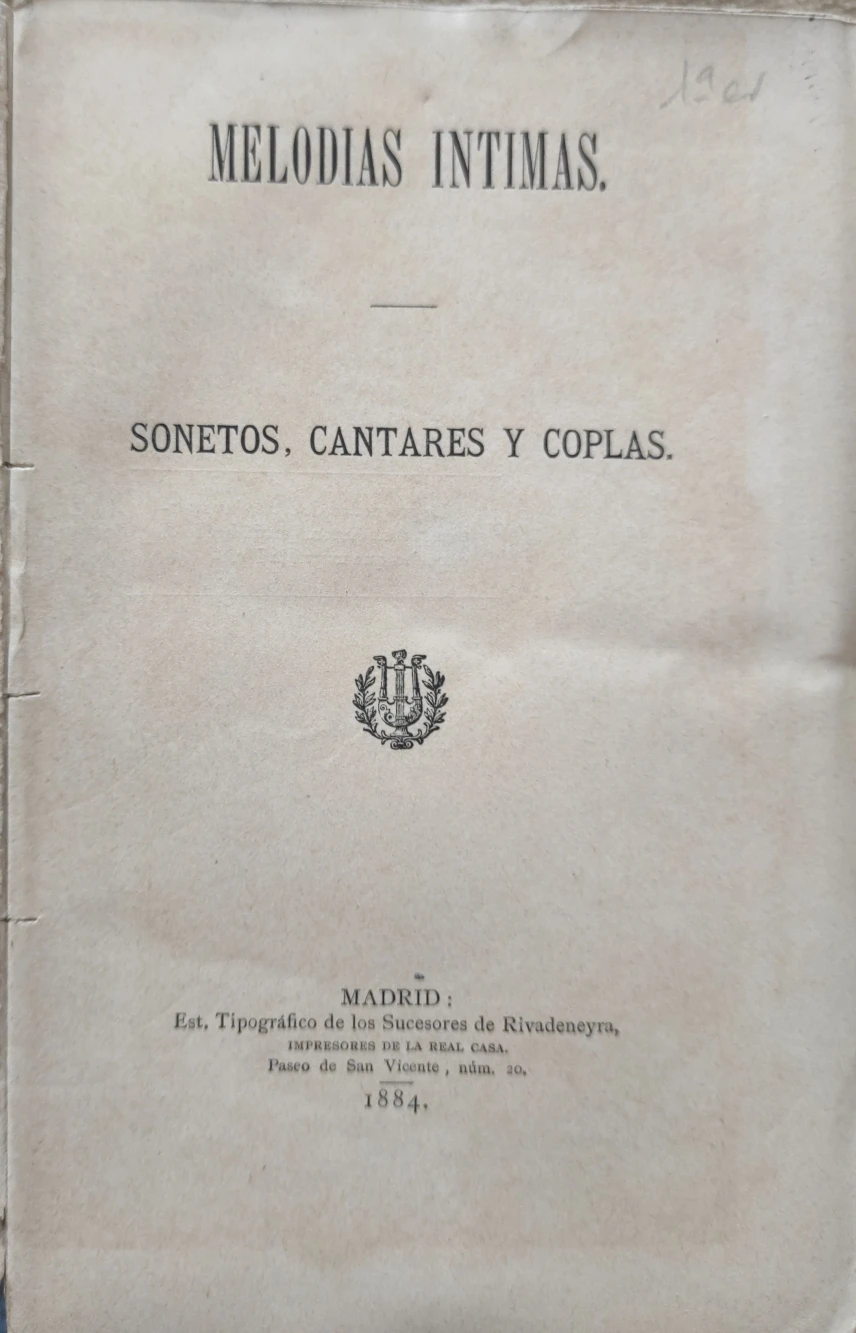 Título: Melodias íntimas sonetos, cantares y coplas