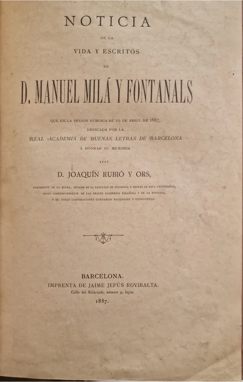Autoría: Joaquín Rubió y Ors 1818-1899, Manuel Milá y Fontanals 1818-1884
