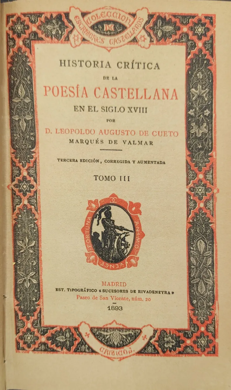 Título: Historia crítica de la poesía castellana en el siglo XVIII, por Leopoldo Augusto de Cueto, marqués d...