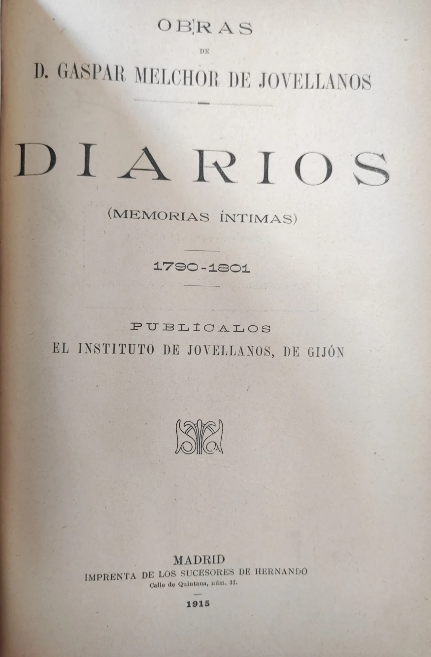 Título: Obras de D. Gaspar Melchor de JovellanosDiarios (Memorias íntimas). 1790-1801 Publicadas el Institut...