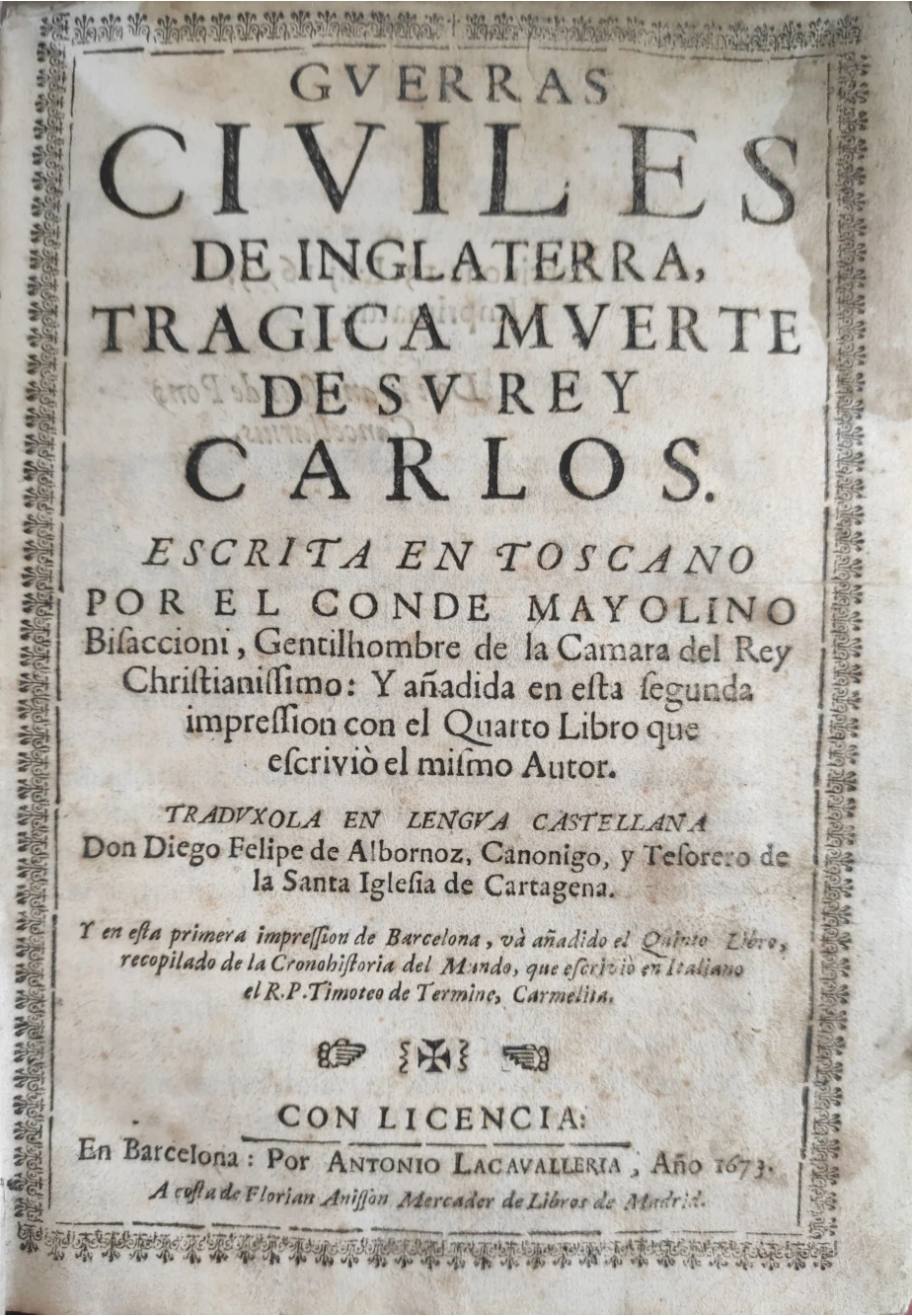 Título: Guerras civiles de Inglaterra, tragica muerte de su rey Carlos. Escrita en toscano por el Conde Mayo...