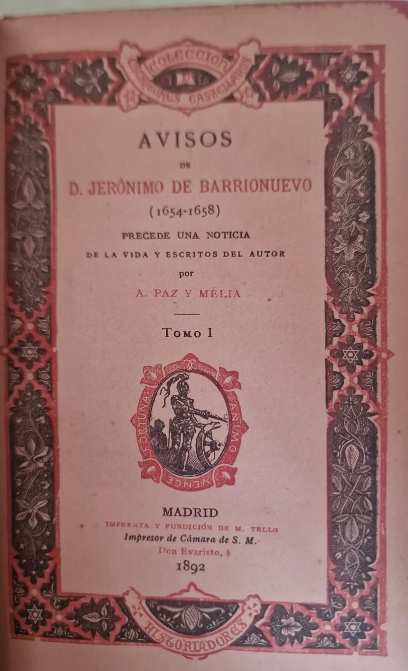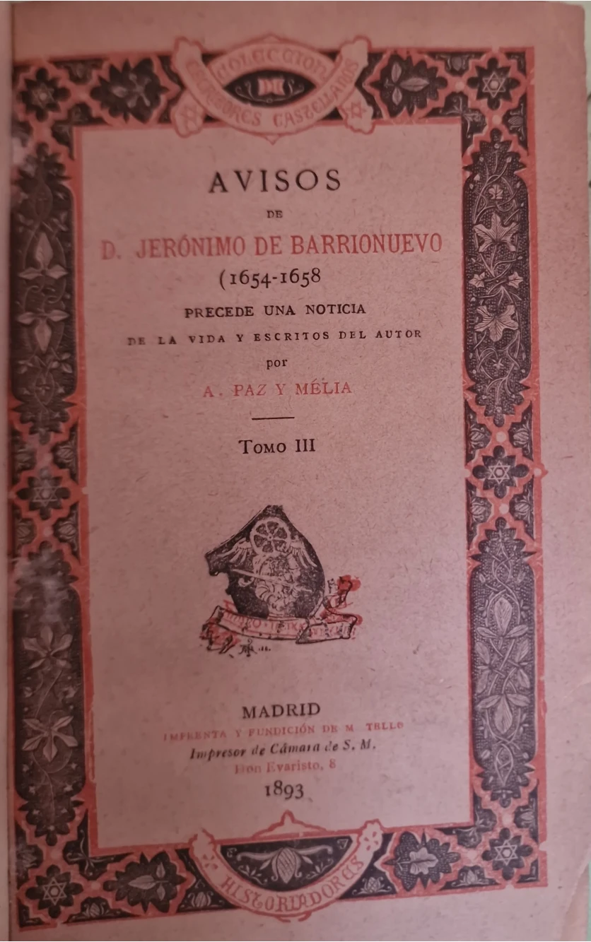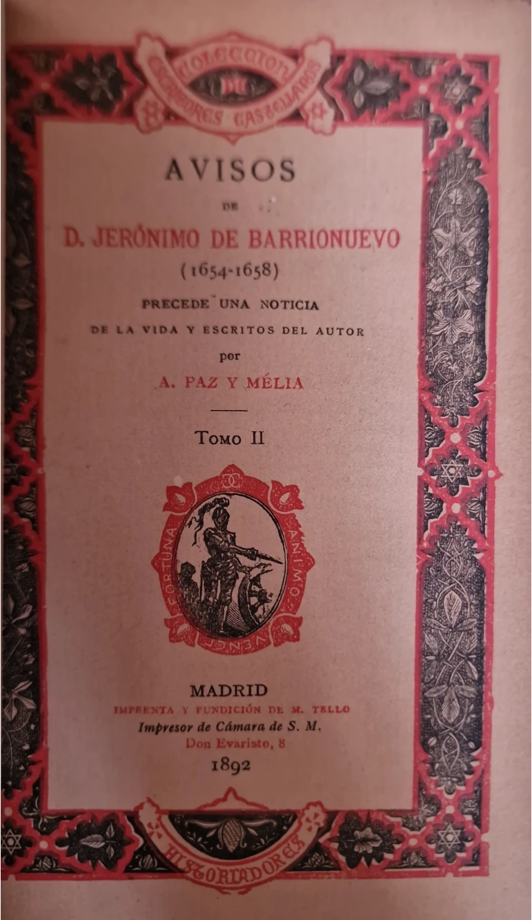 Título: Avisos de D. Jerónimo de Barrionuevo (1654-1658) Precede una noticia de la vida y escritos del autor...