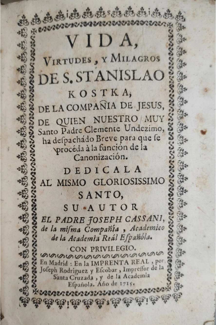 Título: Vida virtudes, y milagros de San Stanislao de Kostka de la Compañia de Iesus ... / su autor el padre...