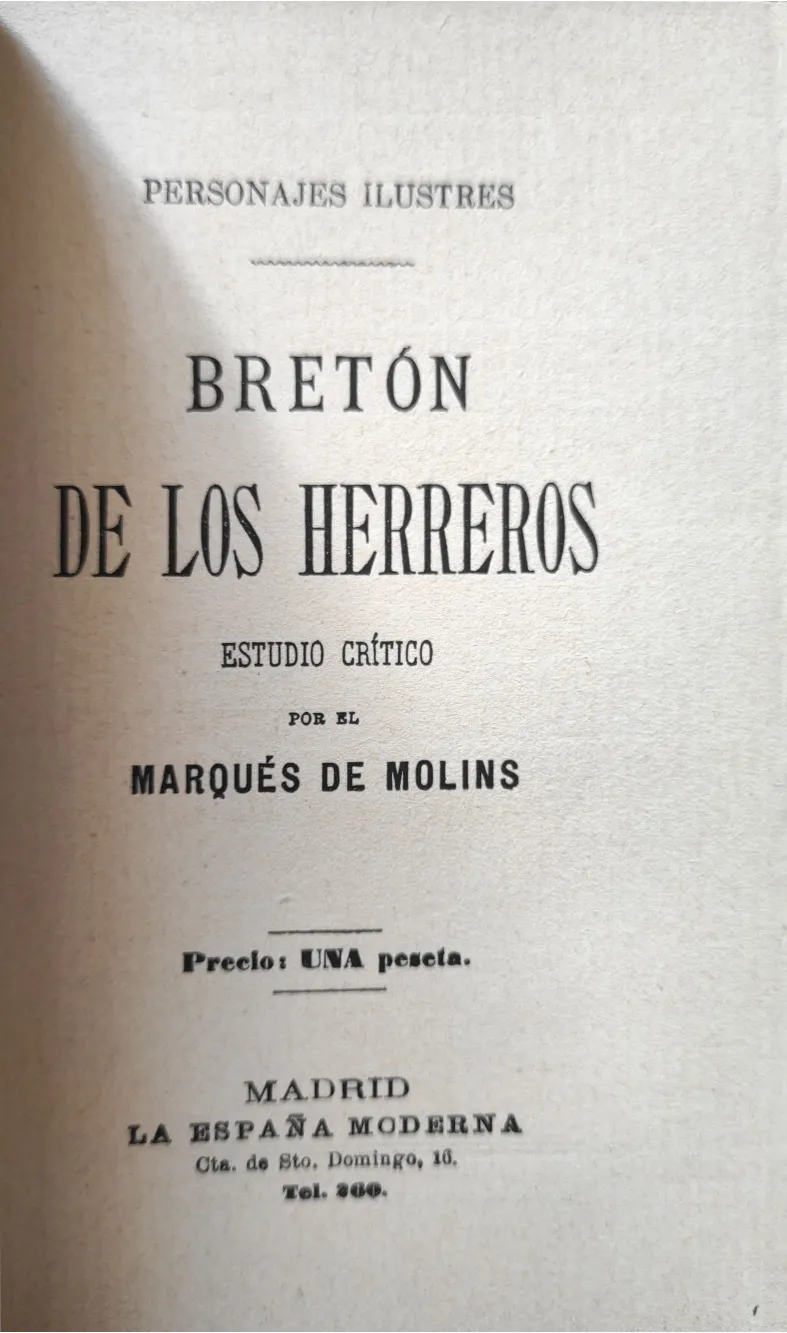 Título: Bretón de los Herreros: estudio crítico. Por el Marqués de Molins
