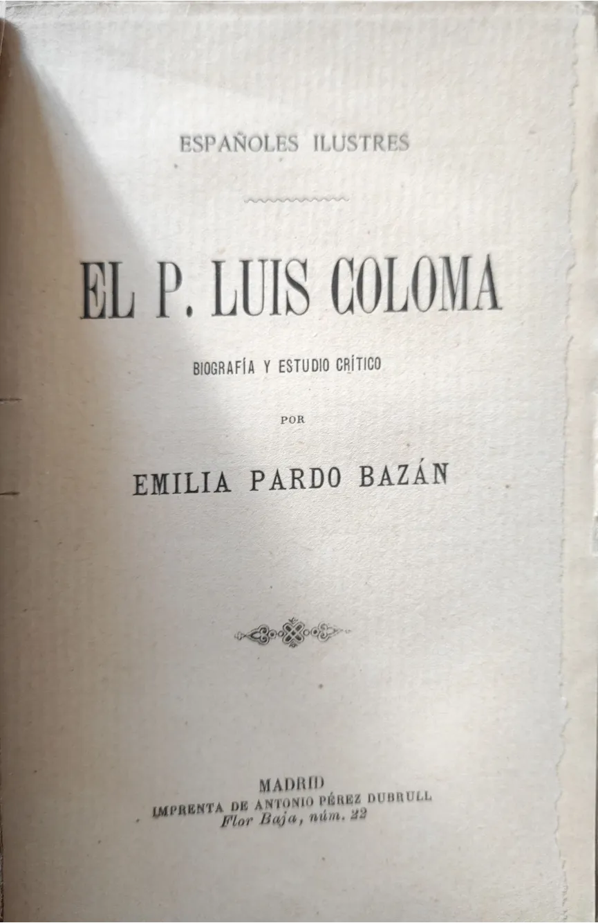 Título: El P. Luis Coloma : biografía y estudio crítico. Por Emilia Pardo Bazán